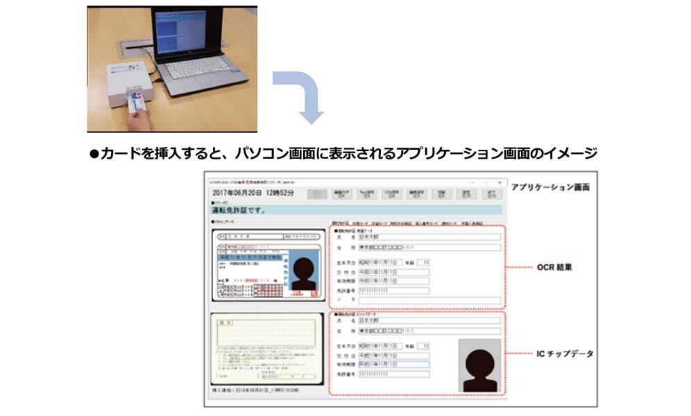 ・独自技術により、運転免許証は暗証番号無しでも真がん判定可能です。
