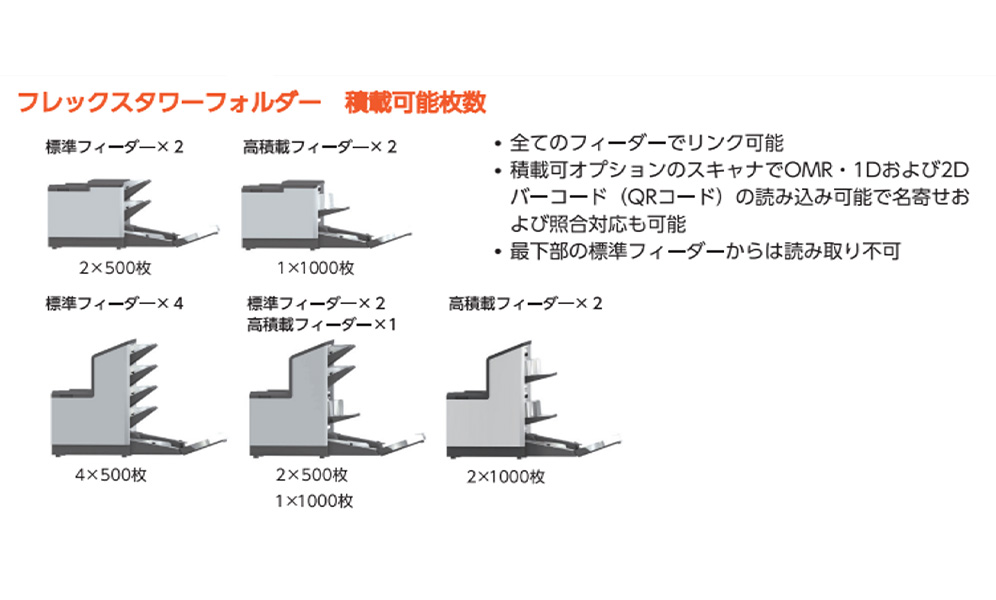 - フレックスタワーフォルダーはそれぞれのニーズに合わせて3種のフィーダー配置を選択できます。
