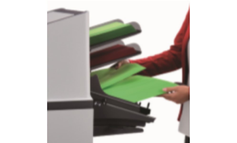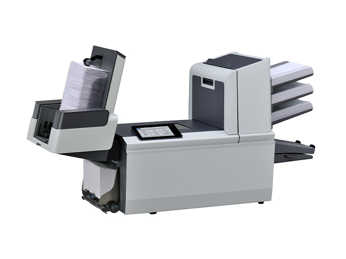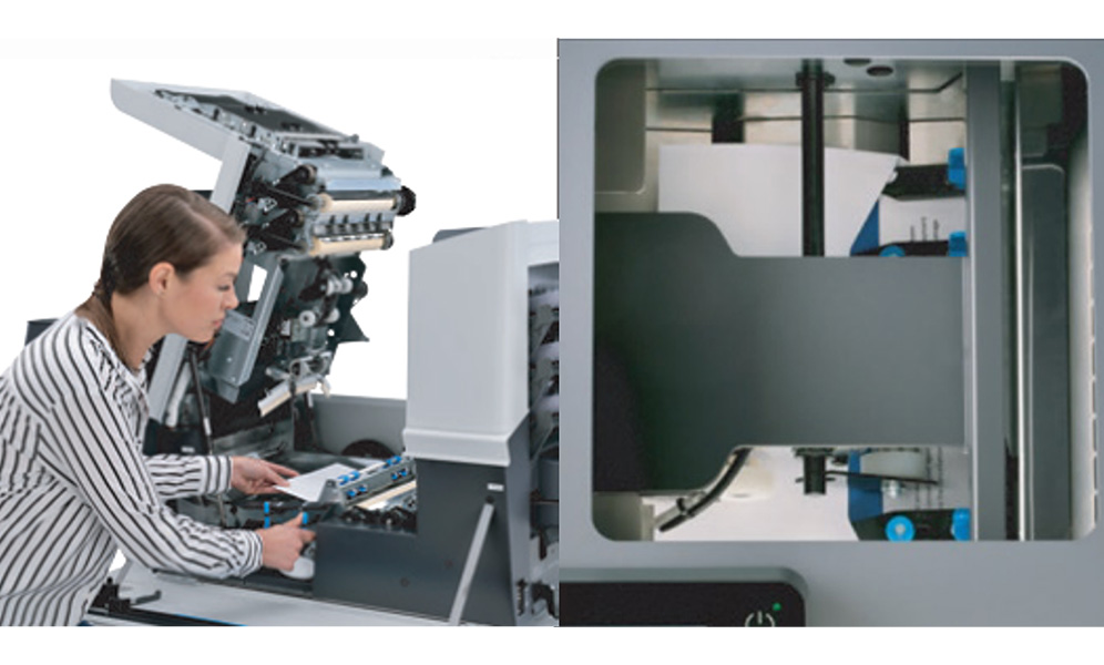 - 最大325枚のBRE(返信用封筒)もしくは1,200枚の用紙を積載するマキシフィーダーは、生産性を最大にし、作業時間を減らします。