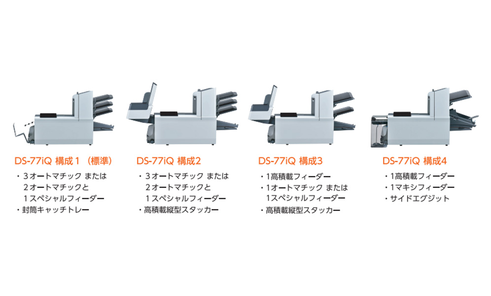 - フィーダーの種類と組合せを選択できるので、状況に応じた封入物の構成をデザインし、タイミングを逃さずにメッセージを配信できます。DS-77iQは効果的なDMなどのキャンペーンを展開するお手伝いをします。まとめ折りはプロフェッショナルなメールに仕上げる重要な要素であり、紙詰まりを少なくします。また、 封入物に整合性をもたらします。