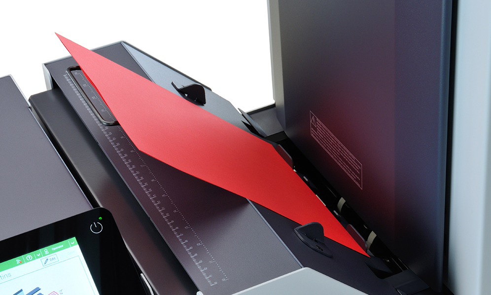 インサーターは請求書や納品書などの書類を折り、封入、封かん (封筒の糊付け)までの作業をすべて自動化します。 特に DS-95i は、操作が簡単でさまざまな作業内容に対応する生産性の高いインサーターです。