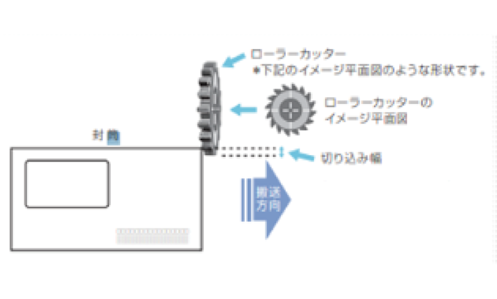 - 封入物の切り落としや封筒に鋭い切り口が発生しない仕様