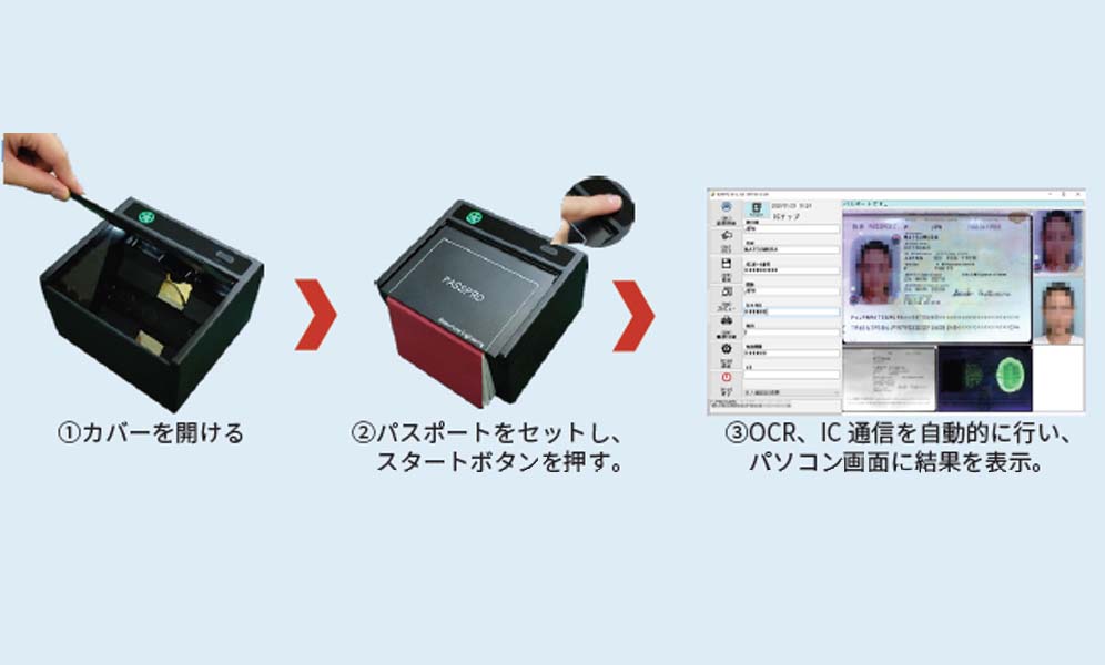 高速パスポートリーダーPASSPRO®(パスプロ)が、業務をサポートします。