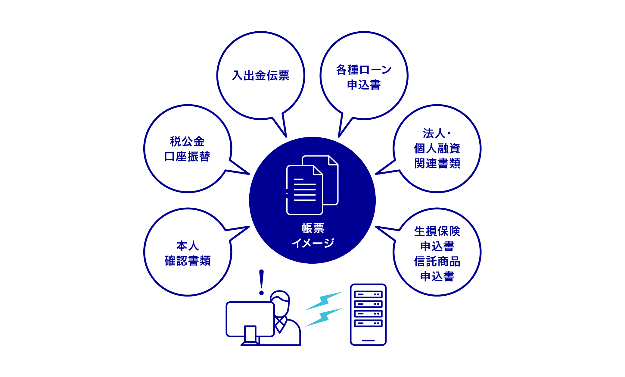 - 個別業務に縛られない自由な検索キーの設定が可能です。全文検索エンジンを内蔵しているため、論理的には帳票記載内容の全ての項目を検索キーにする事が可能です。