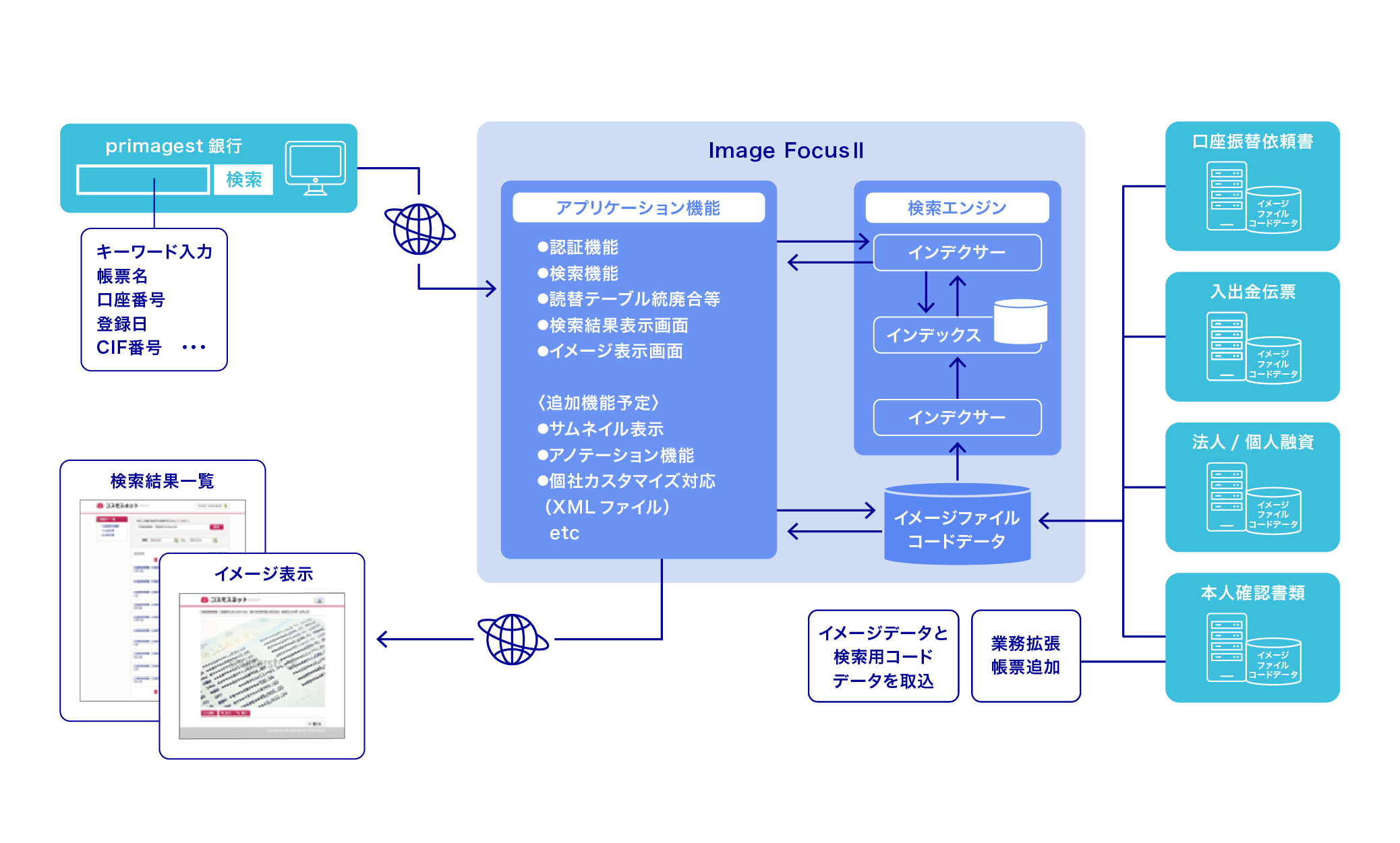 ImageFocusⅡはWeb検索ページのような操作性で他システムのDB内部のイメージデータの検索が可能です。