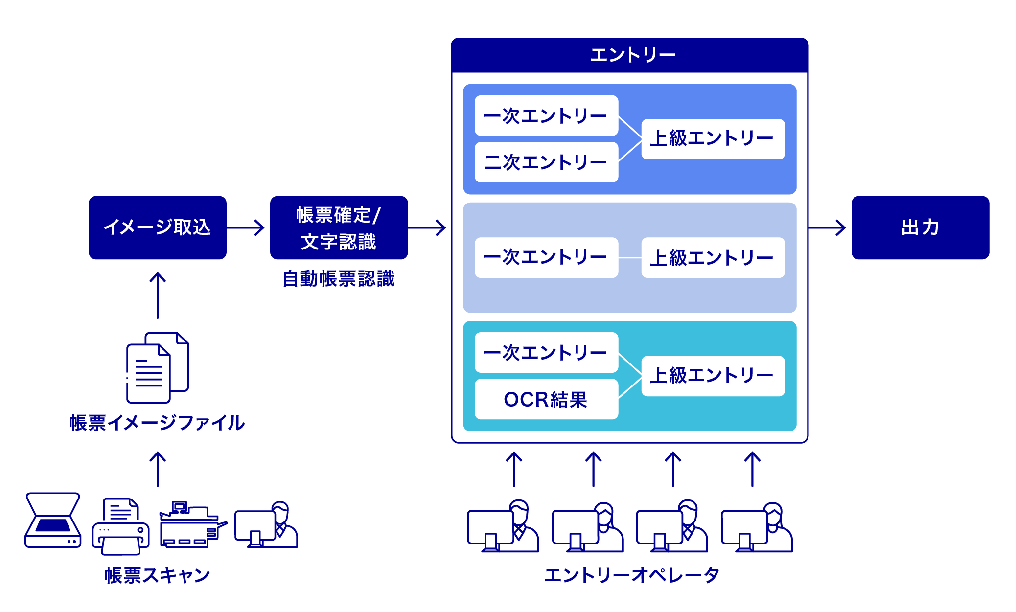 - エントリー項目の属性(活字・手書き)に即したOCRエンジンを組み込む事により、文字認識結果を入力結果として扱う事ができます。結果としてエントリー効率を向上させる事ができます。
