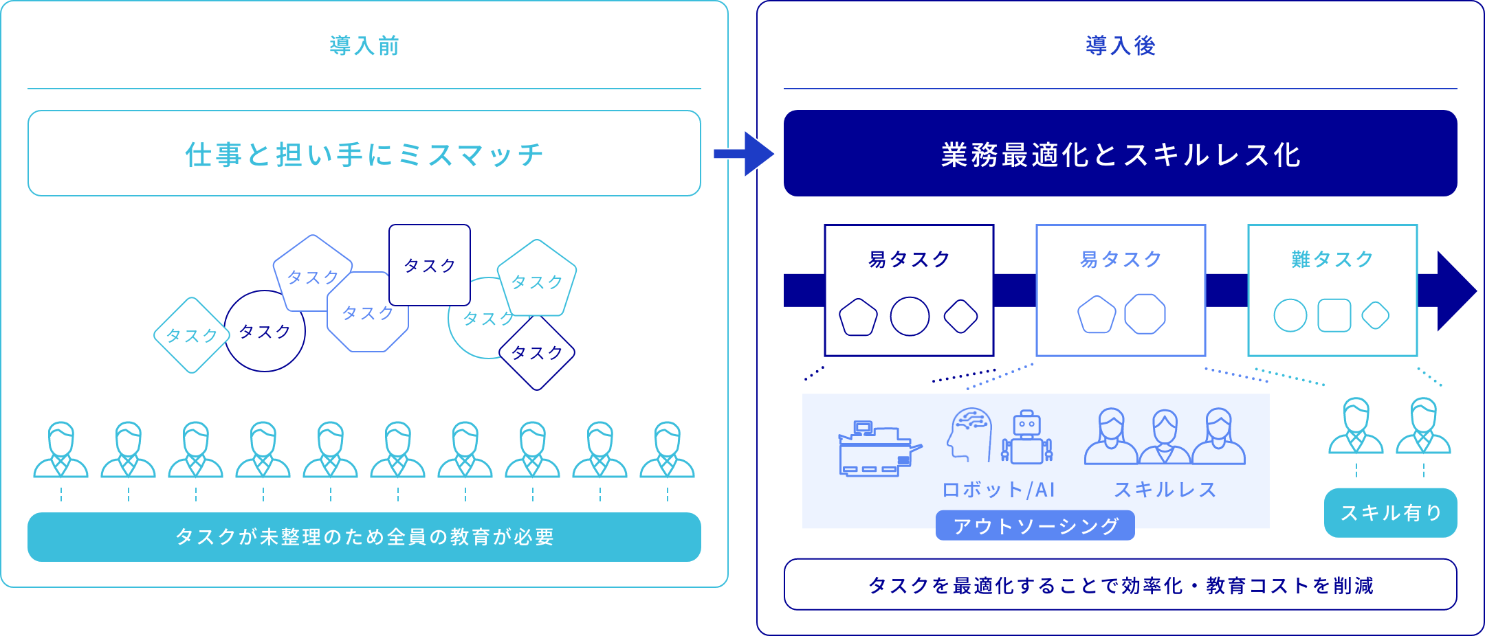 これによって管理者層やシーム構成が簡素化され、複数業務をワンラインで運営することが可能となり、