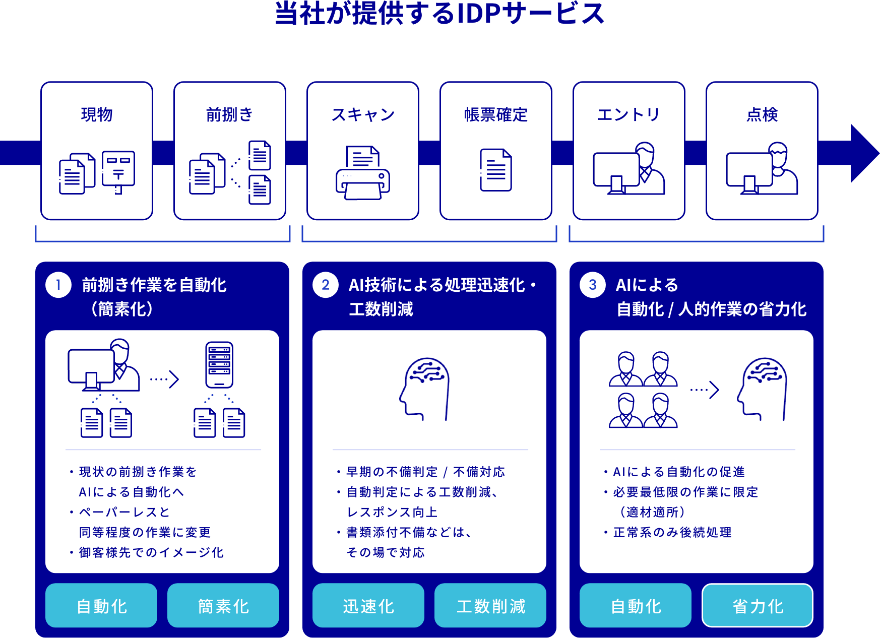 データ抽出処理「IDP(インテリジェント・ドキュメント・プロセッシング)」分野に注目し、以下のコンセプトを掲げています。