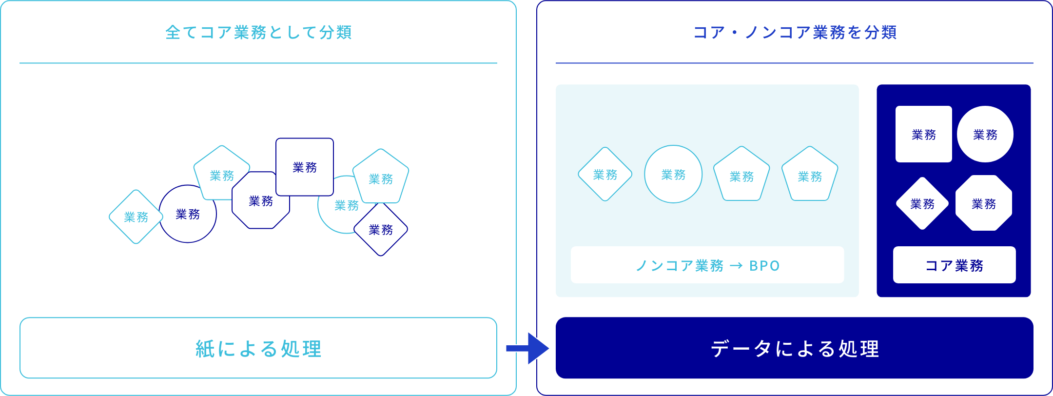 業務処理共通基盤を提供することにより、共通資産の共有化を実現します。
