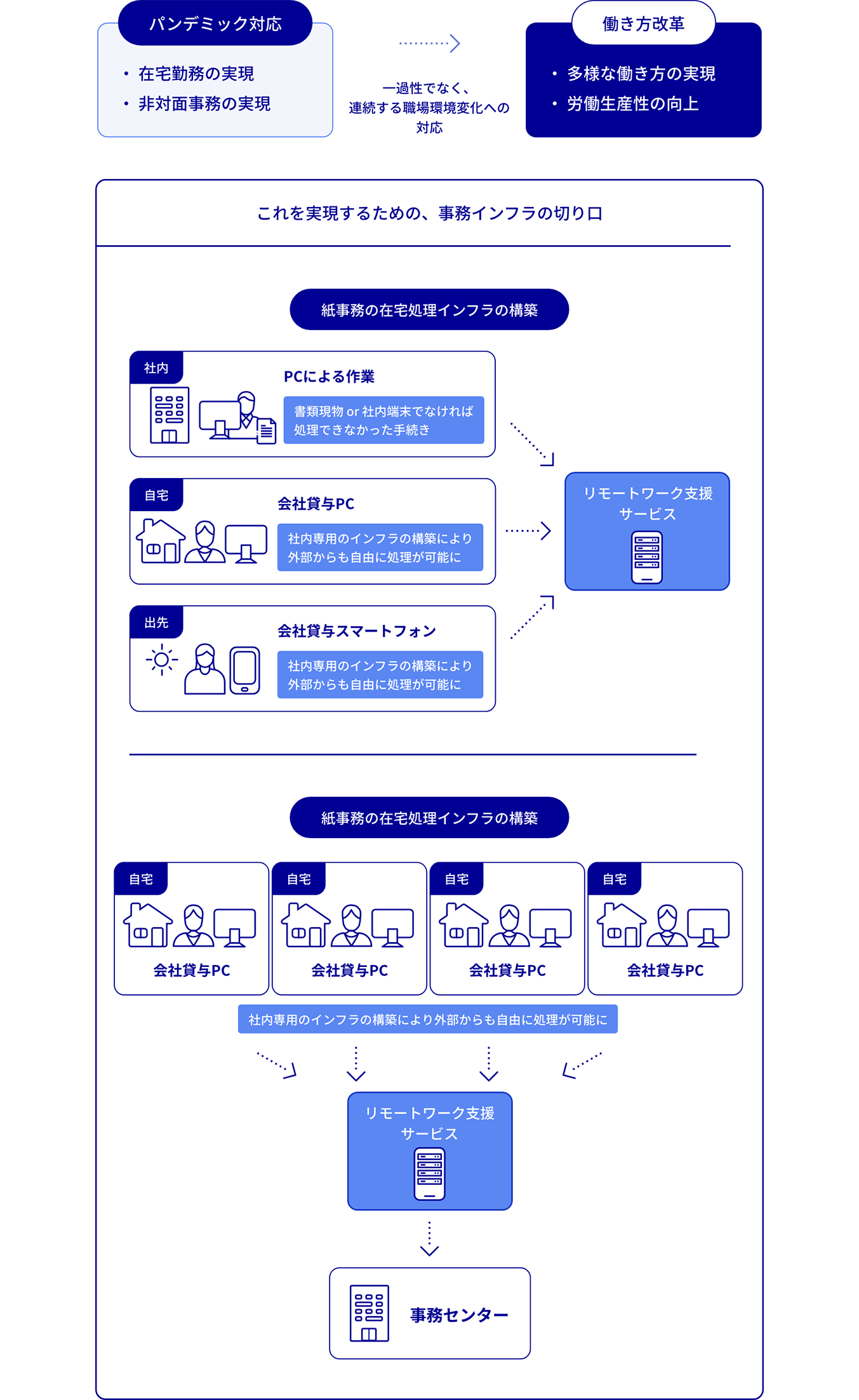 コロナ禍のようなパンデミック対策には紙事務の在宅処理インフラ構築は有効であり、