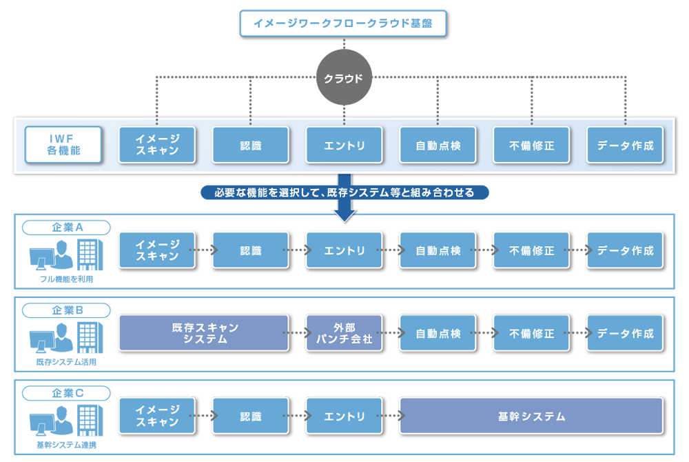 イメージワークフロー基盤の各機能を、クラウドサービスとして提供いたします。