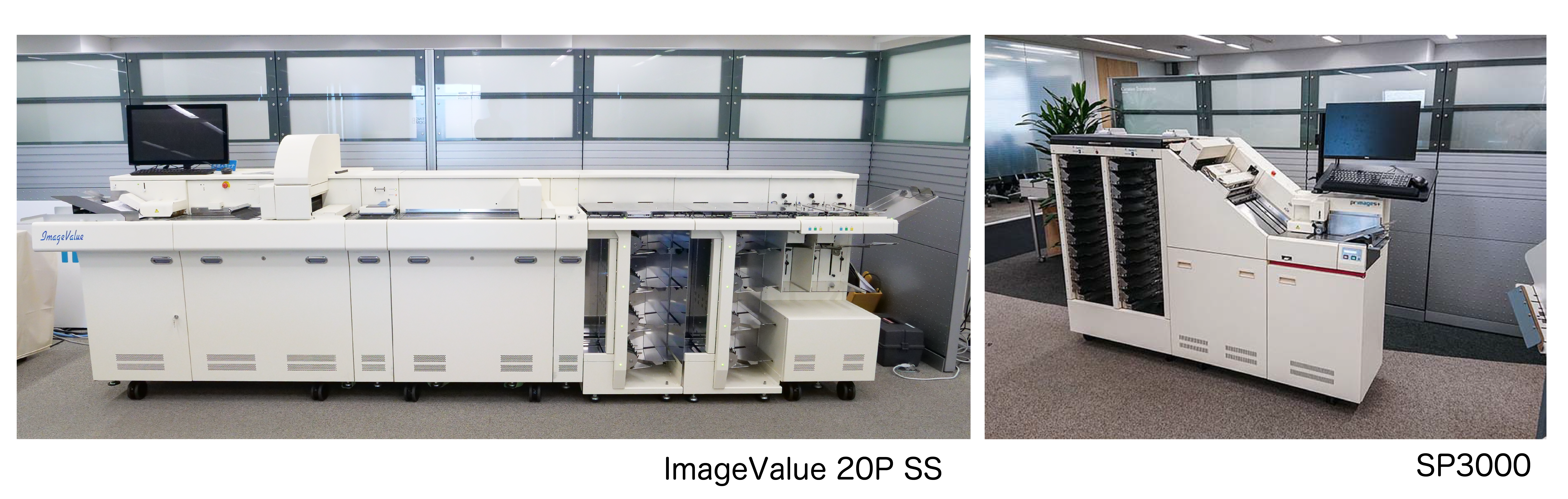 集中処理には、弊社製品で世界最高速度の「ImageValue 20P Series」や高速バーコードリーダー・ソータ「SP3000」を使用します。