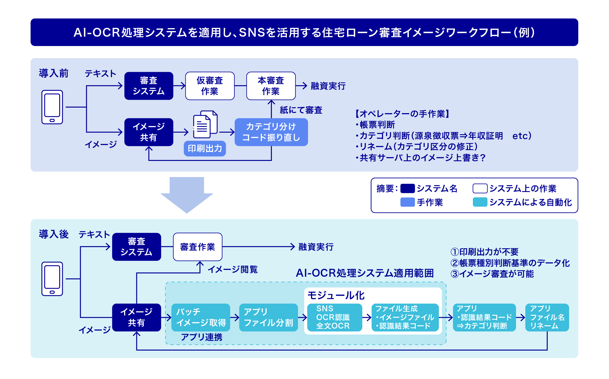 ●AI-OCR処理システムを適用する事で、SNSなどを活用した新しい審査システムやイメージワークフローの構築、運用にも対応。
