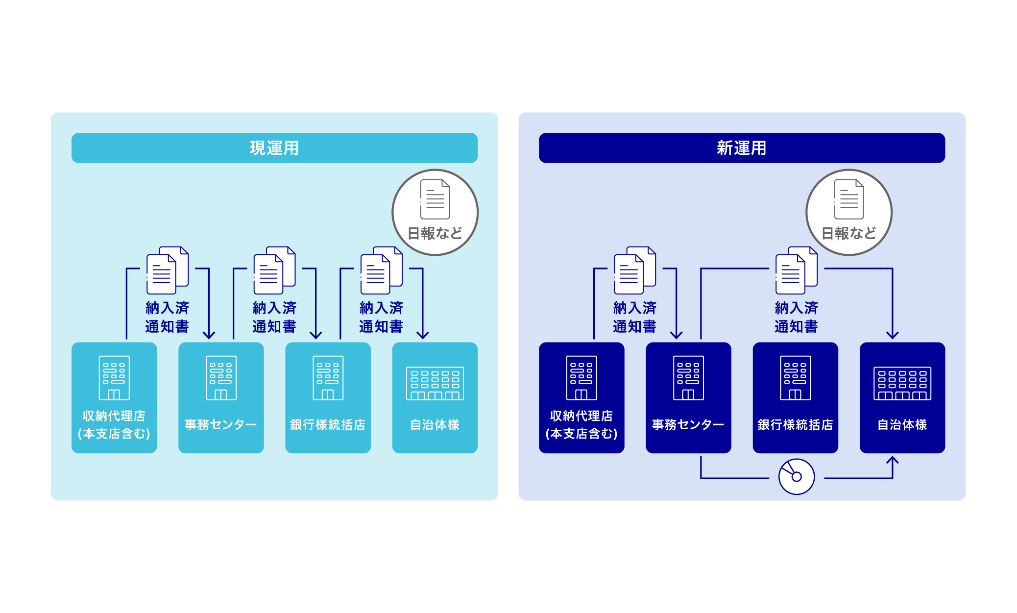 一方、事務集中システムを利用した場合でも、電債や収納チャネルの増加により業務が細分化しており、業務ごとのシステム導入コストが見合わず、既存システムの老朽化による保守期限切れや業務停止のリスクも高まっています。