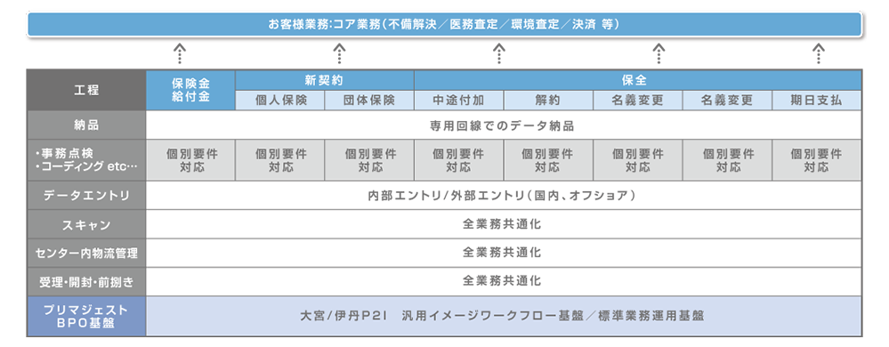 業界を取り巻く外部環境、内部環境の変化にともない、法令改正、変動の激しい業務量の変化、事業継続性への対応など、さまざまな要求に対応するため、自社運営する事務センターでの処理をアウトソーシングする要求が増加してきております。