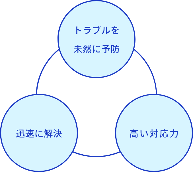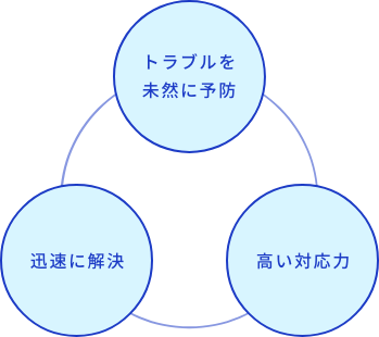- コールセンターで一括管理して障害対応します。お客様からの障害連絡により、障害内容の切り分け、復旧、もしくは回避策の提示等によって適切な問題解決を行います。(※なおサポート時間に関してはご契約により柔軟に対応いたします。)